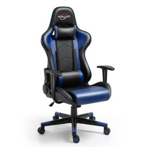 Gaming Chair Racing Style High-Back PU Leather Swivel Chair W/Headrest Lumbar